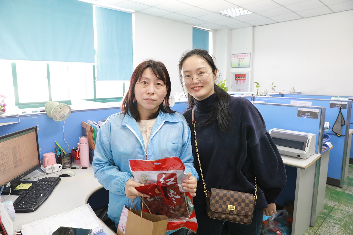 ??? 3月7日上午,公司黨支部、工會(huì)干部代表一行前往閩侯新大陸制造中心和馬尾飛毛腿工廠生產(chǎn)一線,親切慰問女職工,向女神們表達(dá)節(jié)日祝福和衷心感謝。?天創(chuàng)工會(huì)主席劉婭秋稱贊道,在難忘歲月里,女職工們?yōu)楣窘ㄔO(shè)、小家經(jīng)營,把半邊天撐起,在多重角色的轉(zhuǎn)換中,巾幗不讓須眉,營造絢爛和旖旎。