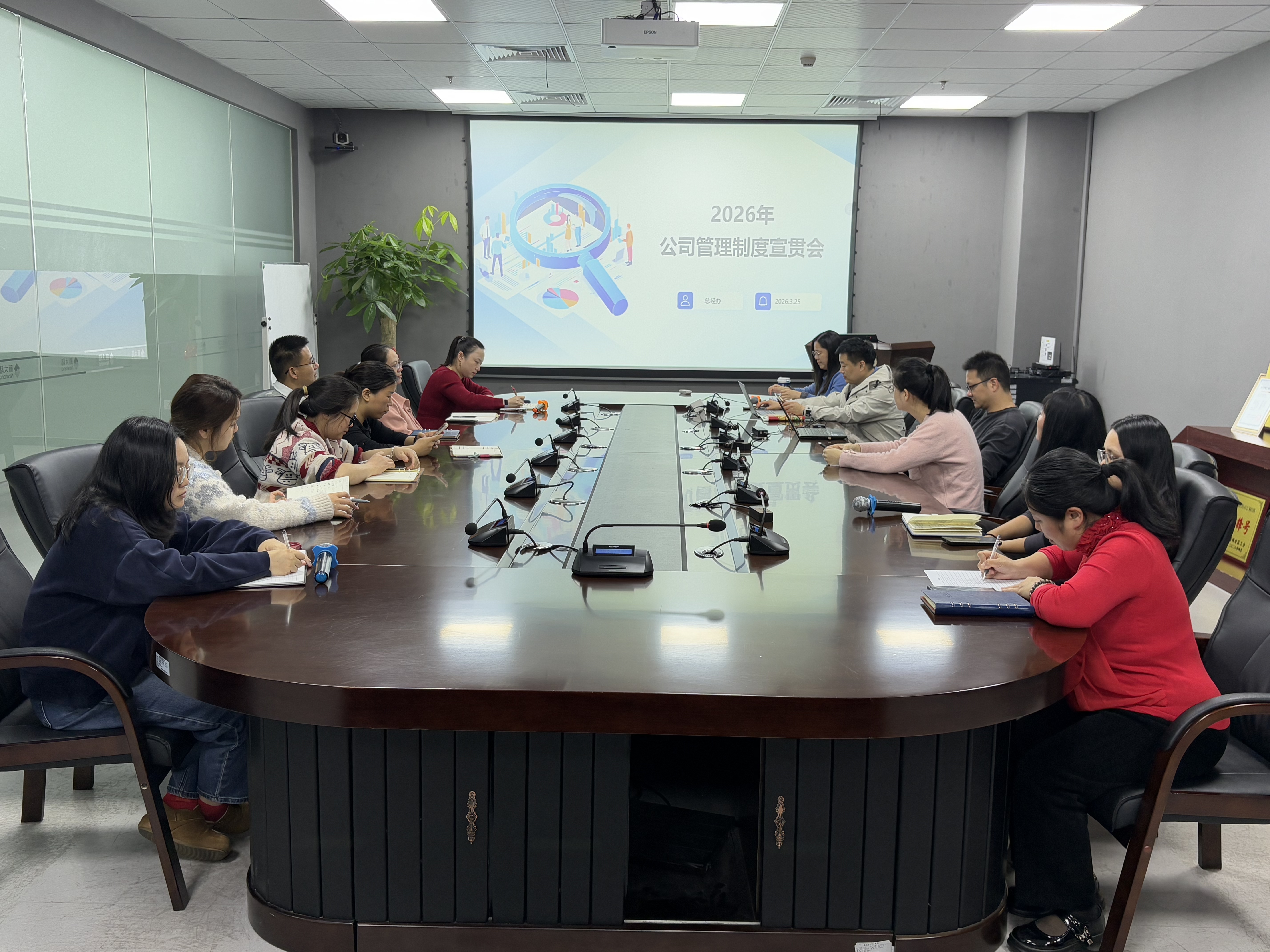 ????為進一步夯實管理基礎,提升辦事效率,3月25日下午,公司總經辦在科技園貴賓室組織召開2026年公司行政類管理制度宣貫會議。本次會議采用“線上+線下”雙線聯動的形式,各部門代表參加學習,重點聚焦高頻事務流程,旨在幫助員工清晰掌握辦事路徑,實現“辦事有依據、協作更順暢”。
